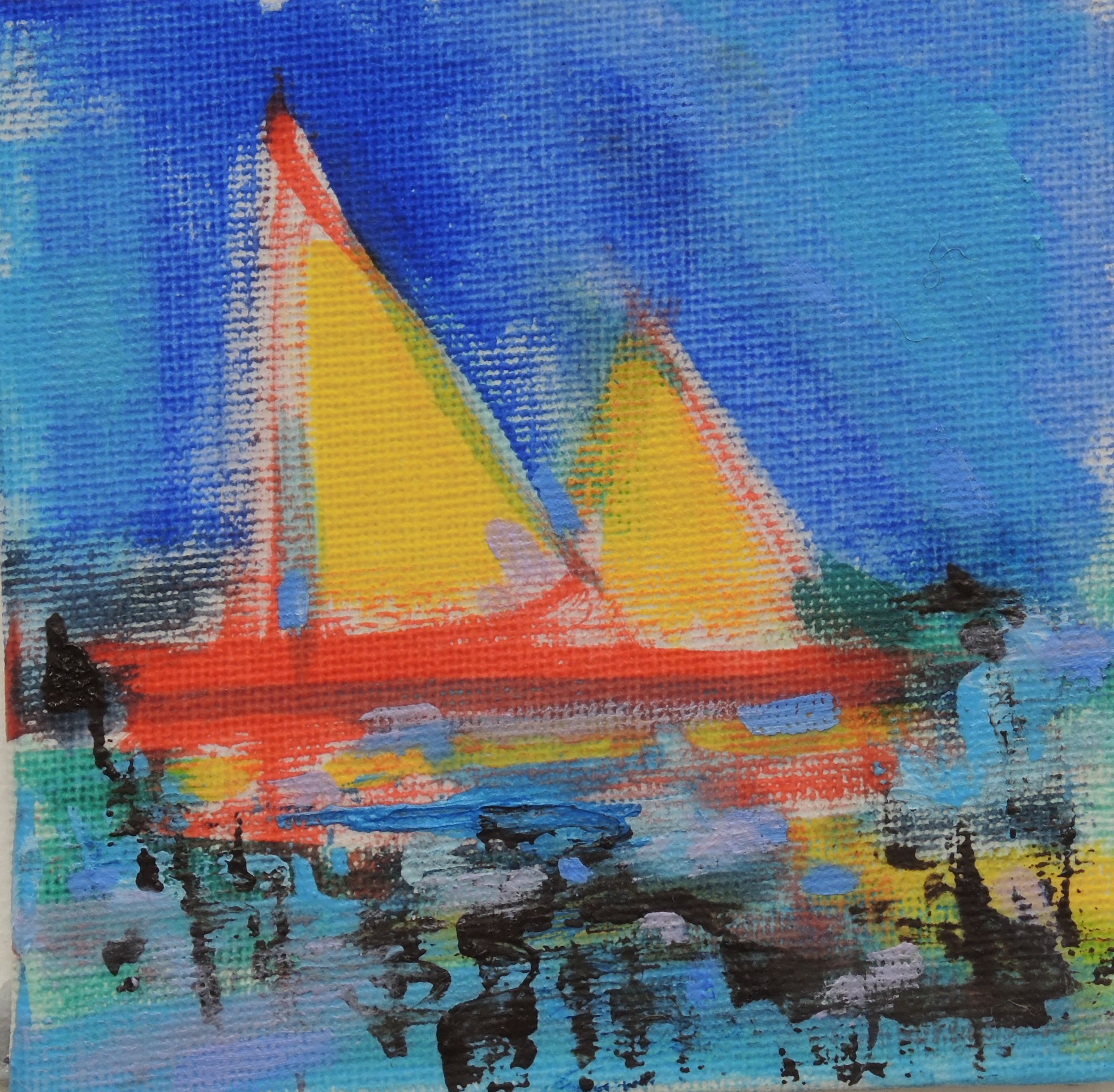 Eighty one Windows came from experimenting with left-over paint where I simply played with the colours at hand letting my imagination lead me to the images on the individual 5cm canvas on board squares. Some are figurative, some abstract and some will be developed on a larger format. The complete work is framed and 105 square. It is shown at the bottom of this gallery.